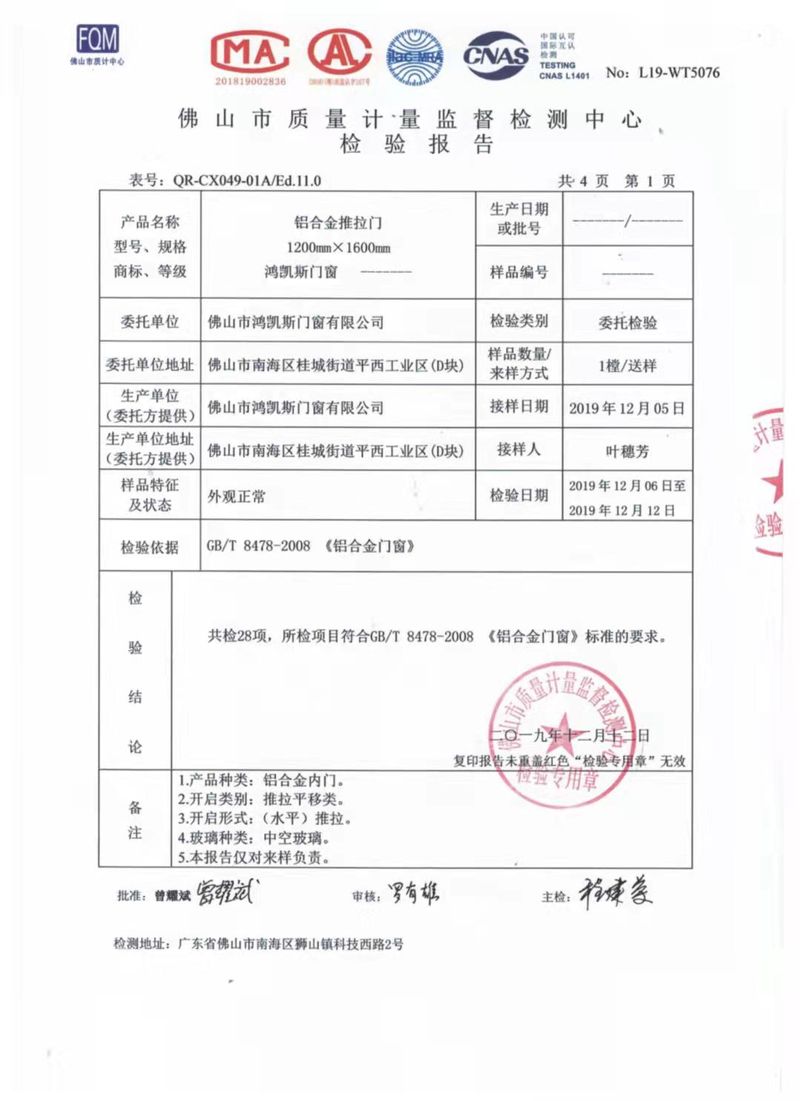 窗的檢測報告